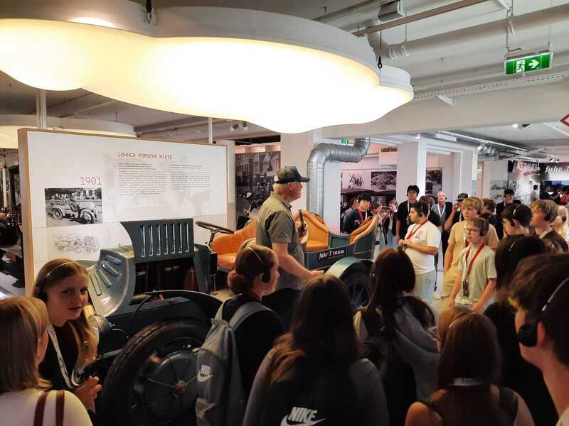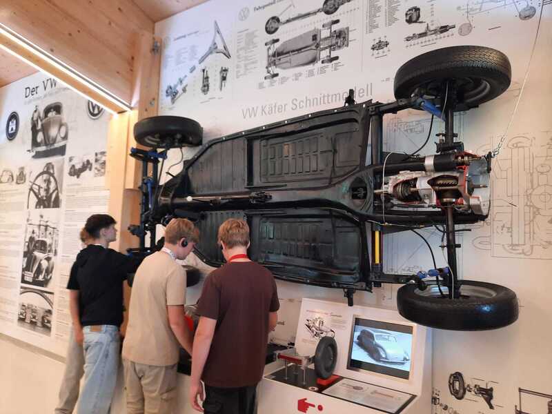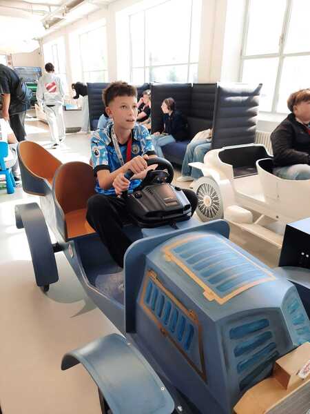 Die Schüler*innen begeisterten sich vor allem für die interaktiven Stationen. Man konnte zum Beispiel einen Rennsimulator testen oder eine Carrera-Rennbahn ausprobieren. Es gab auch viele Bildschirme und Hörstationen, an denen man mehr über die Geschichte der Fahrzeuge erfahren konnte.