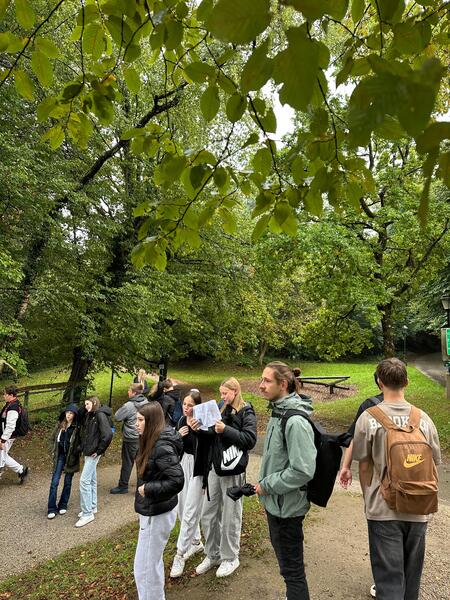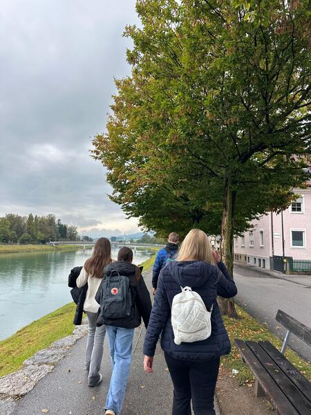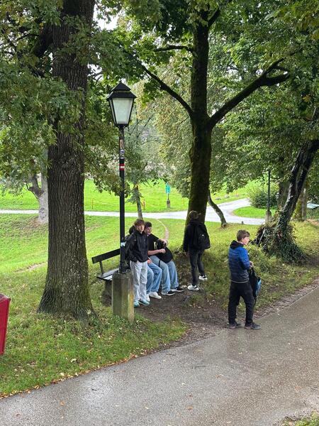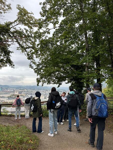 Als der Regen endlich nachließ, ging es wieder nach draußen: Über den Mönchsberg spazierten wir mit weitem Blick über die Dächer der Altstadt – Salzburg von oben ist einfach besonders. Zurück in der Stadt folgten wir der Salzach Richtung Hauptbahnhof, wo die Schüler*innen schließlich entlassen wurden – erfüllt von Eindrücken, Gesprächen & vielen neuen Erkenntnissen über unsere Stadt (Abenteuer garantiert!).